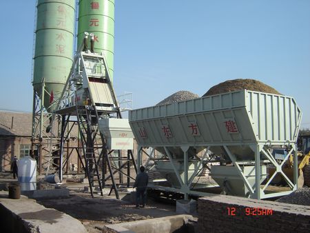 HZS75型混凝土攪拌站是由供料、配料、攪拌、電氣控制及鋼結構部件組成的全自動混凝土拌制成套設備,適用于中等以上規模的建筑工地、預制件廠和商品混凝土生產廠。 該站骨料配料部分,采用PL2400型混凝土配料機,裝載機上料,氣動扇型門給料,電子秤計量,可同時儲存三種骨料,骨料計量在地面進行,計量好的料由提升斗送到攪拌機中。水泥和粉煤灰由水泥倉儲存,螺旋機輸送,水泥秤、粉煤灰稱計量:水由水箱或蓄水池儲存,水泵供水,水秤計量:液體外加劑:在外加劑儲存箱中攪拌均勻后,由水泵送入外加劑秤進行計量。整個配料與攪拌全過程由電控系統控制自動完成(也可進行手動控制),控制系統可存儲20個不同的混凝土配比供用戶隨時調用,如配打印機還可完成各種報表打印,如用戶需要還可配置砂含水量測試儀(選配)。 該站整體結構簡單,安裝調試方便,系統配置先進,各物料的計量全部采用稱量方式,計量和控制系統全部采用進口元件,工作可靠性高。 1.2 主要技術參數 生產能力 75 m3/h 配套主機 JSl500 骨料計量精度 ±2% 水計量精度 ±l% 水泥計量精度 ±1% 外加劑計量精度 ±l% 卸料高度 3.8m 整機質量 46t(含水泥倉) 整機裝機功率 140kW